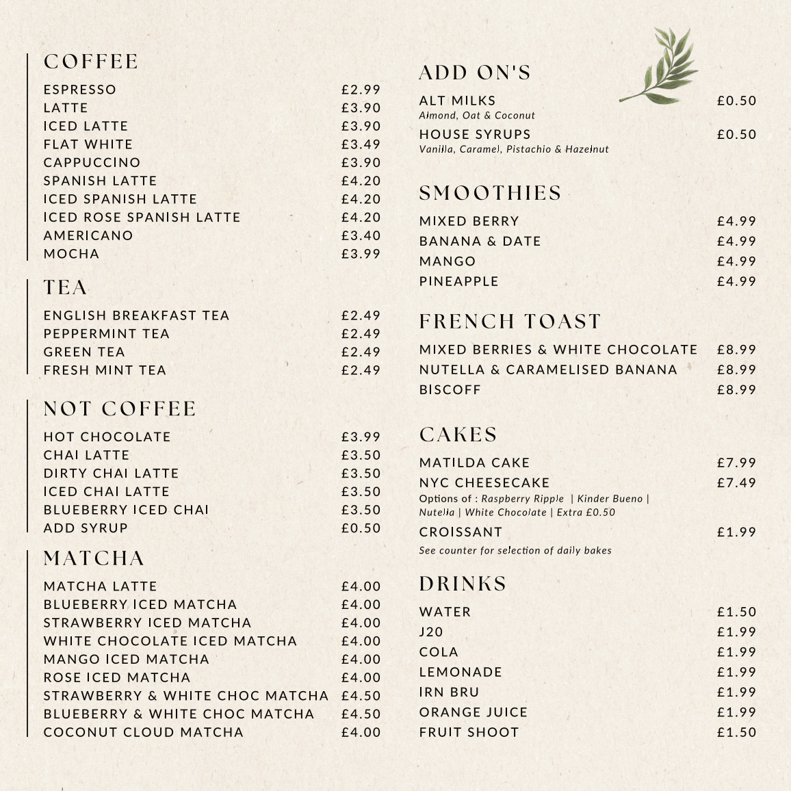 Indulge your sweet tooth with mouthwatering desserts such as the NY Cheesecake at £7.49 or the Matilda Cake at £7.99, both of which have received rave reviews from patrons who highlight their rich flavors and exquisitely crafted textures. Guests have noted how the café maintains a balance between sweetness and richness, ensuring each bite is a memorable experience.